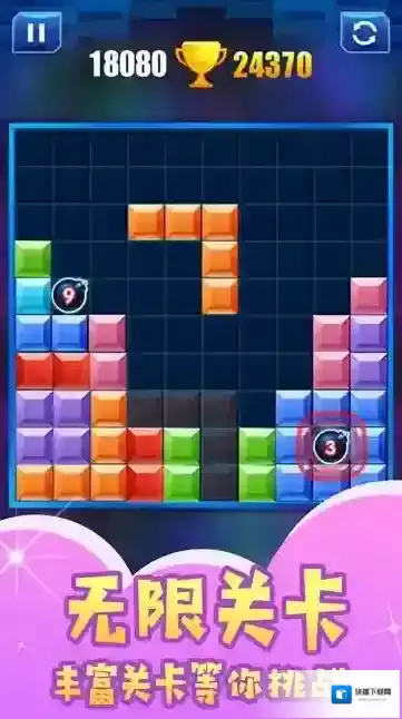 3、视觉听觉沉浸:采用渐变色彩方块与动态光影效果,消除时伴随清脆音效与粒子爆炸动画,营造沉浸式的解压体验。