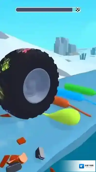 2、闯关途中,遭遇各类形状奇特的障碍物与特殊地形,需灵活调整轮胎方向与速度,巧妙碾压通过,获取更高分数。