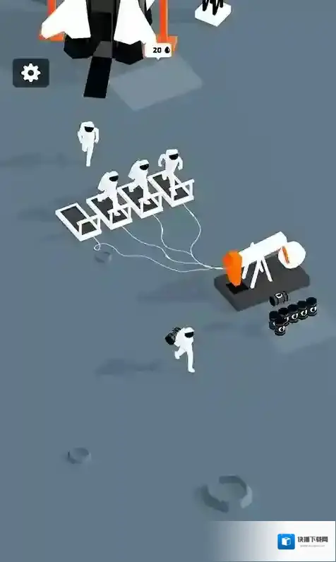 1、进入游戏后在月球表面选定区域建造“资源采集站”,点击“石油钻井”“矿石挖掘机”等设备开始收集基础资源,拖动资源箱储存物资。