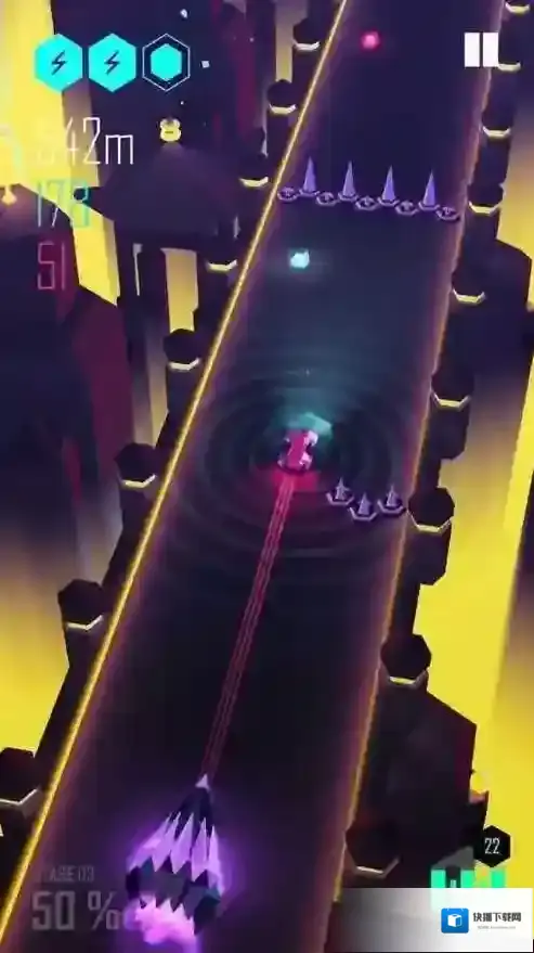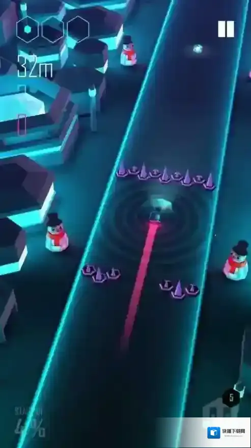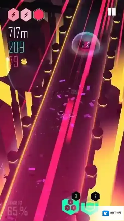 1、音乐节奏联动:赛道变化与障碍出现频率贴合背景音乐节拍,玩家需踩准节奏消除方块,打造视听一体的沉浸体验。