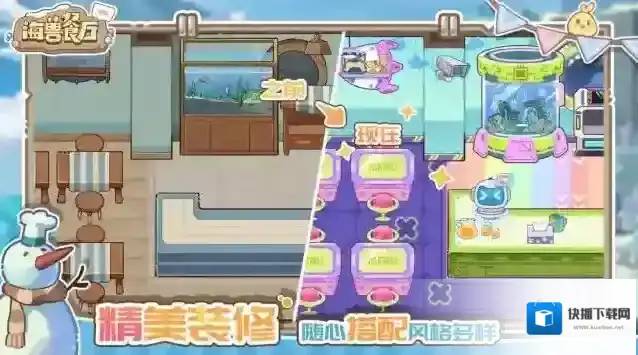 海兽餐厅,将餐厅经营和下海捕鱼结合在一起的游戏,在海兽餐厅里玩家需要一边经营餐厅一边下海捕鱼来获得各种食材。在游戏中有很多鱼类等你去捕捉,非常多的美食等你去研发和制作,各种温馨治愈的故事会给你不同的体验,不断提升等级来打造最棒的餐厅。