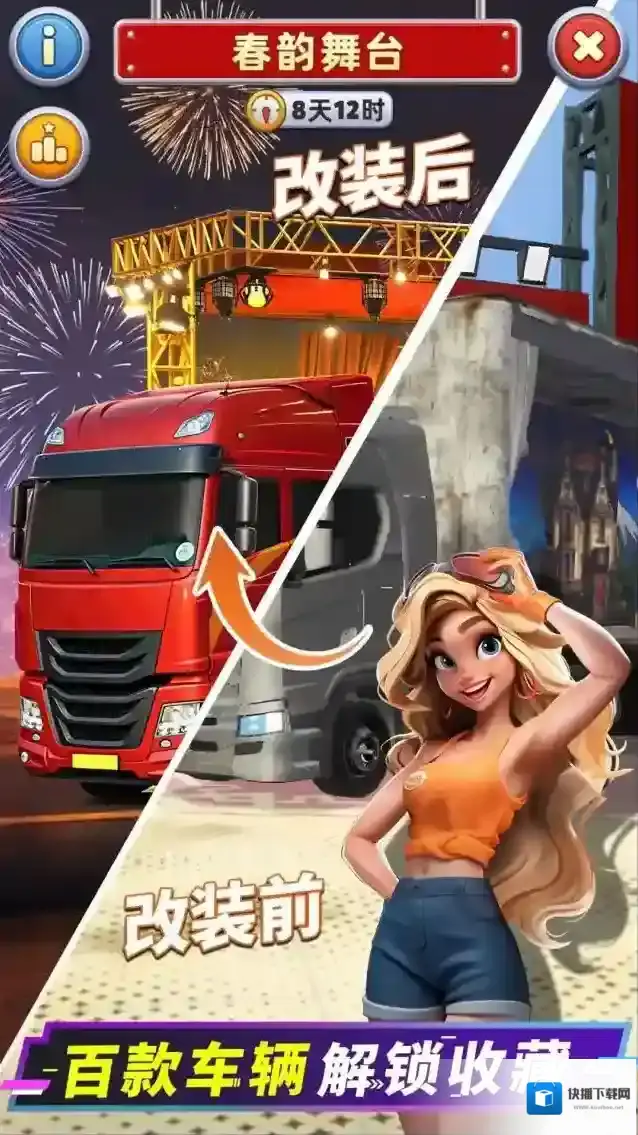 消消闯天下是一款非常有趣的消除闯关游戏,你可以通过消除闯关的玩法收集更多资源来加速卡车的修复和改装,最终你可以创建专属于自己的车队,并且将自己的卡车维修厂良好的运转起来。